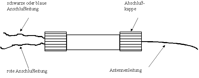 Die Achterstaganpassung wird an das Achterstag eines Schiffes oder an eine lange Leitung angeschlossen. Dabei muß die rote Leitung an das Achterstag und die schwarze (oder blaue) Leitung an Schiffserde angeschlossen werden. Darf der Schiffsrumpf nicht geerdet werden, ist ein Kondensator (1µF / 300V) dazwischen zu schalten.