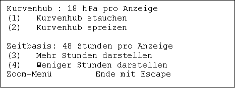 Taste 2: Die Kurve wird gespreizt à weniger hPa pro Anzeige