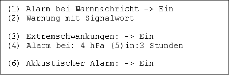 Warnmeldungen und auf Extremsteigung des Luftdrucks hinweisen
