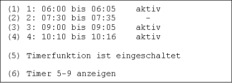 Einstellungen ersten fünf der neun Timer sehen. Der
