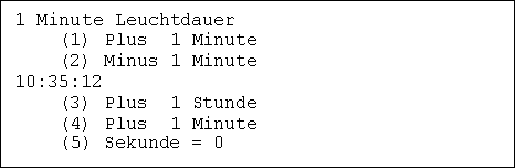 Taste 3: Uhr stellen und Beleuchtungsdauer der